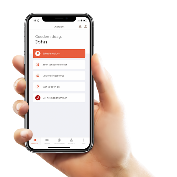 Heeft u schade? Meld uw schade eenvoudig via de "schademelden" functie in de App.